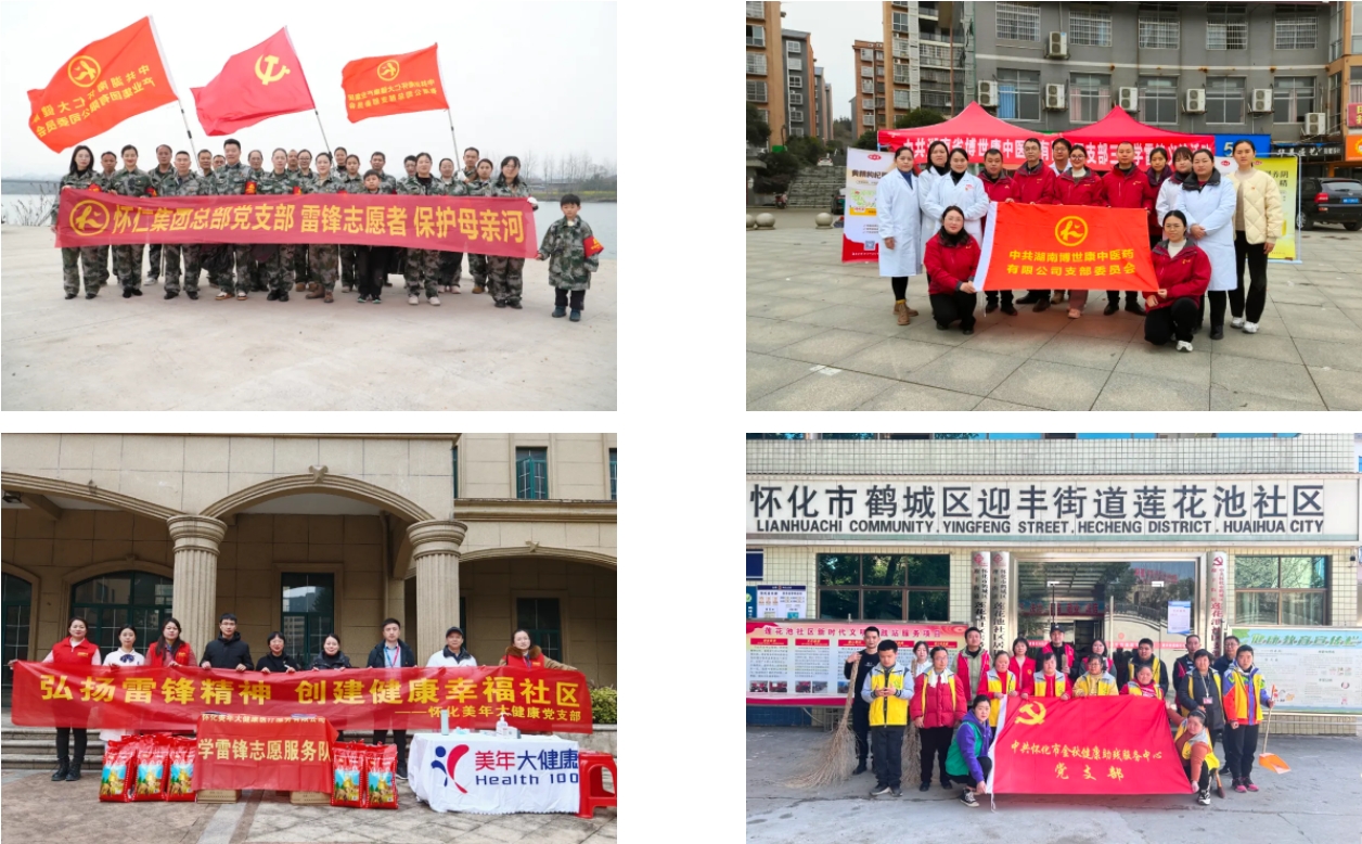 3月,在“學(xué)雷鋒活動(dòng)月”期間,各支部舉辦的活動(dòng)都十分富有特色。懷仁集團(tuán)總部支部在黨委書(shū)記陳毳萍、副書(shū)記舒敏同志帶領(lǐng)下,前往舞水河畔開(kāi)展“雷鋒志愿者保護(hù)母親河”活動(dòng);博世康黨支部在社區(qū)組織學(xué)雷鋒中醫(yī)診療義診活動(dòng);懷化美年大健康黨支部為社區(qū)居民免費(fèi)提供健康咨詢(xún)服務(wù),并慰問(wèn)空巢老人;懷化市金秋健康助殘服務(wù)中心黨支部帶領(lǐng)殘疾人朋友走進(jìn)社區(qū),與工作人員一起清潔衛(wèi)生;老百姓懷仁藥房黨支部為旅客提供從進(jìn)站檢票到進(jìn)站上車(chē)的一條龍服務(wù)活動(dòng);張家界懷仁藥房黨支部去到桑植縣洪家關(guān)光榮院,為孤老烈屬等送去愛(ài)心物資。