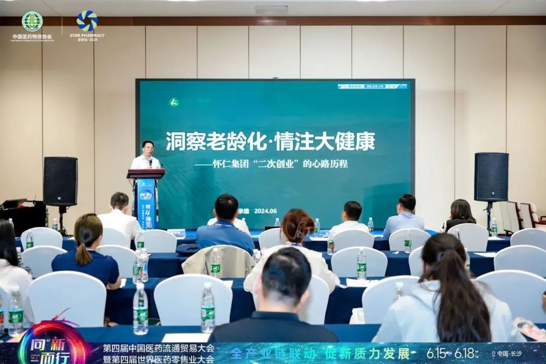 6月16日,以“全產業(yè)鏈聯(lián)動,促新質力發(fā)展”為主題的第四屆中國醫(yī)藥流通貿易大會暨第四屆世界醫(yī)藥零售業(yè)大會(又稱星辰會)在長沙拉開帷幕。懷仁集團董事長林承雄深耕醫(yī)藥領域近30年,用發(fā)光發(fā)熱的赤子心持續(xù)創(chuàng)新和不斷探索,為行業(yè)發(fā)展作出突出貢獻,榮獲“醫(yī)藥工業(yè)領軍人物”獎。在第二屆零售藥店銀發(fā)經濟經論壇上,林承雄受邀出席,并作了《洞察老齡化·情注大健康》主旨演講,分享懷仁“二次創(chuàng)業(yè)”的心路歷路,打造智慧健康養(yǎng)老新模式的發(fā)展實踐與探索成果。