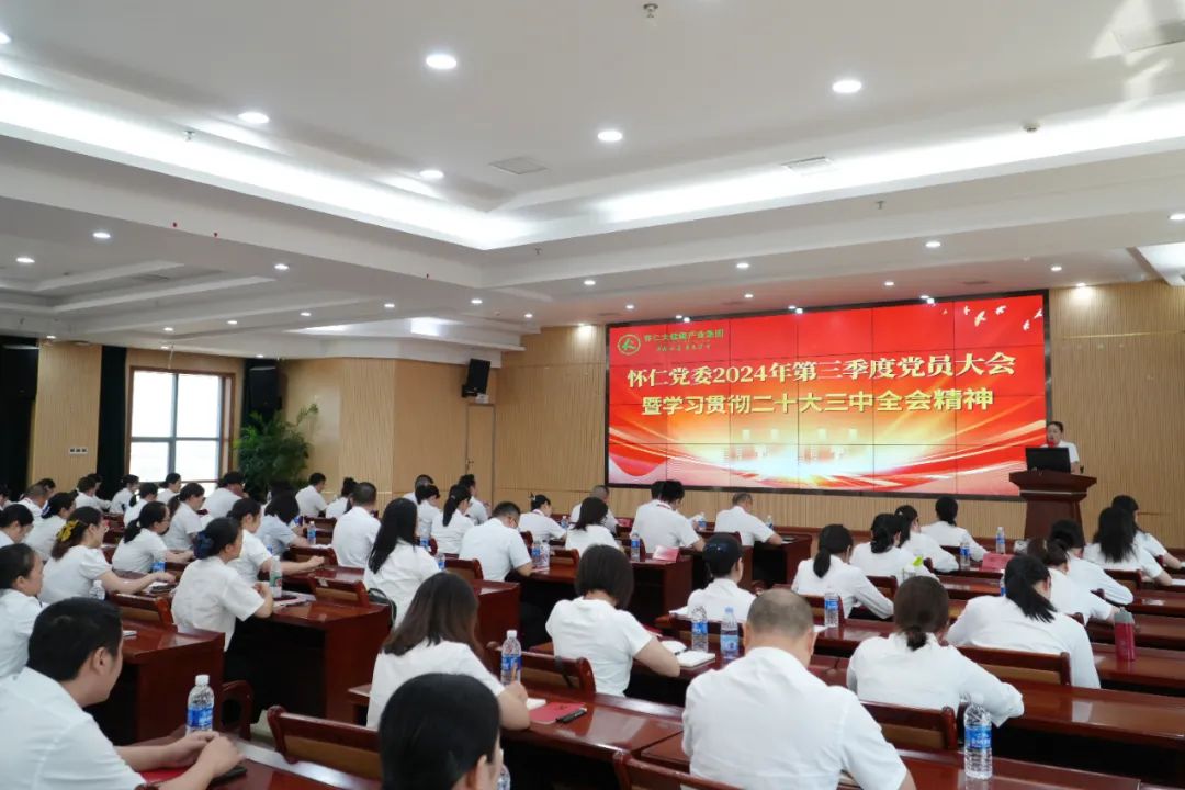 9月25日,懷仁集團黨委2024年三季度黨員大會暨學習貫徹黨的二十屆三中全會精神宣講活動,在集團總部十二樓大會議室舉行。懷仁集團黨委書記、副董事長陳毳萍,黨委副書記、副總裁舒敏,及各支部全體黨員、預備黨員、入黨積極分子等一百余人參加。特別邀請鶴城高新區(qū)黨工委書記舒軍、懷化市委黨??蒲胁坎块L、哲學副教授李成實前來宣講授課。黨委組織委員李勁湘主持。