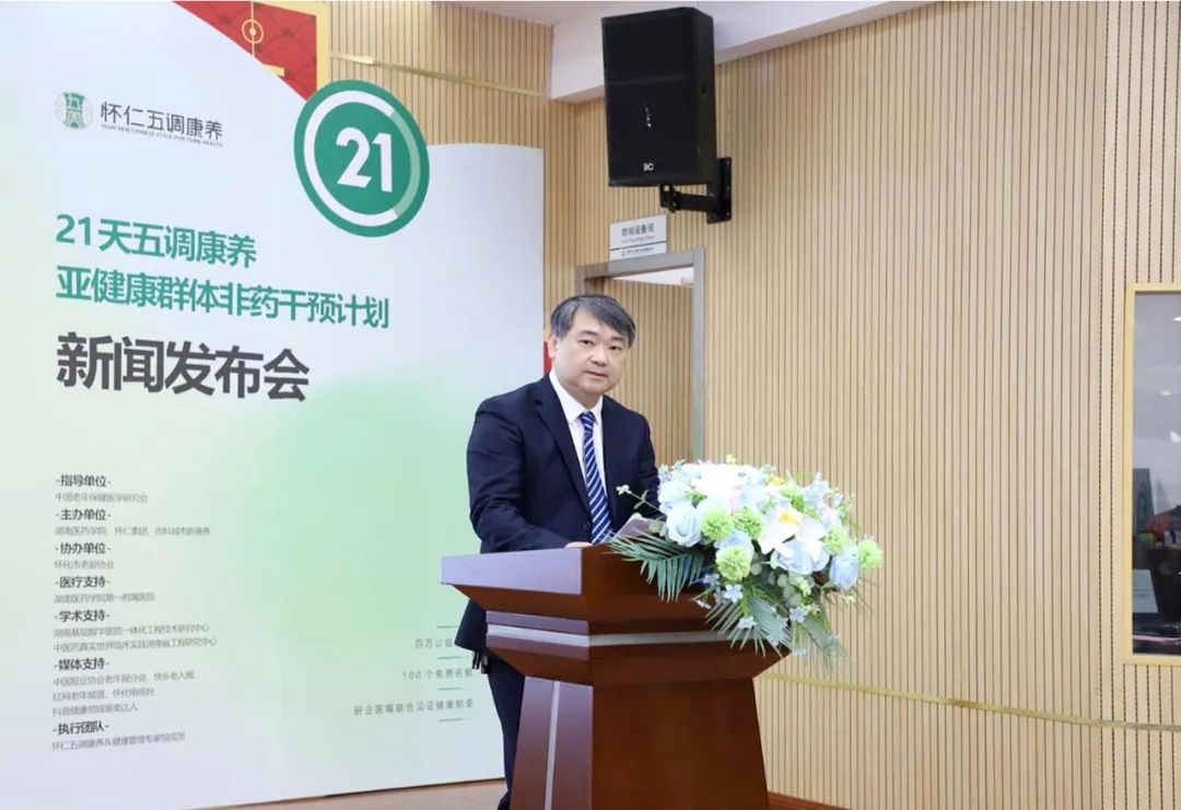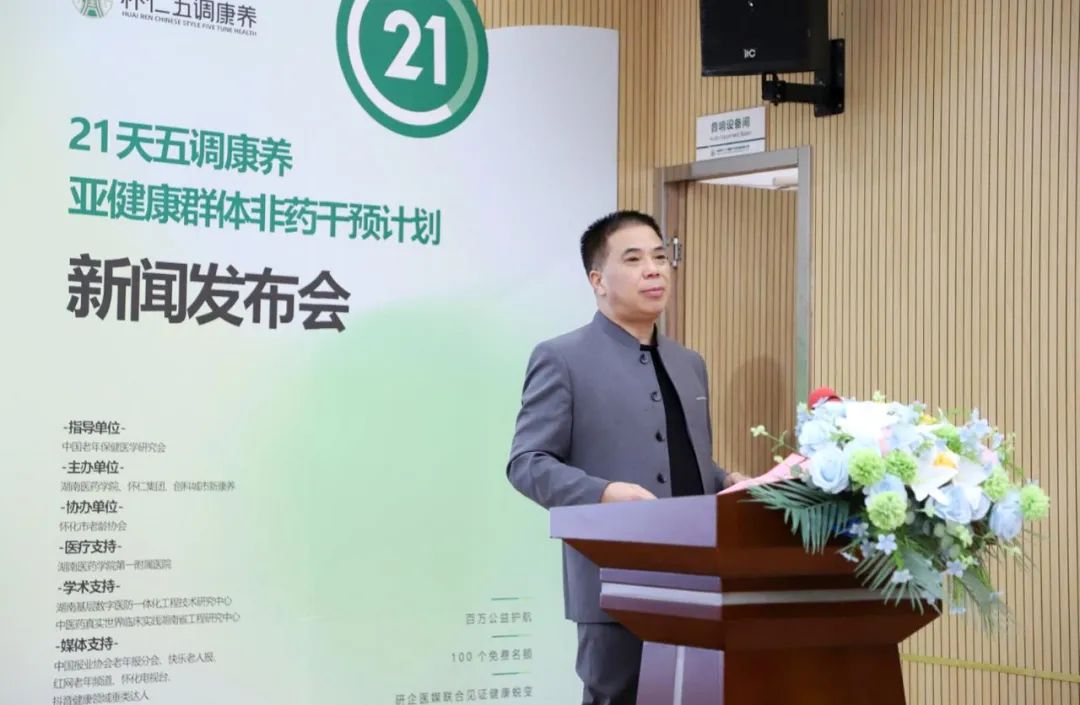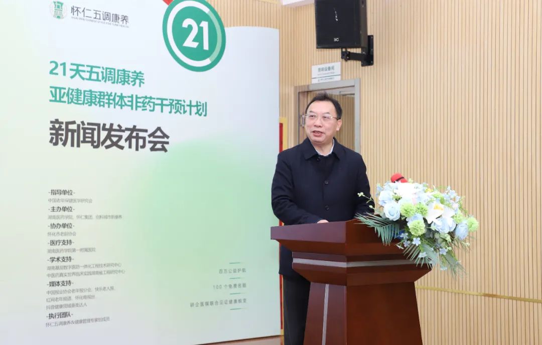 2月27日上午,由中國老年保健醫(yī)學(xué)研究會指導(dǎo),湖南醫(yī)藥學(xué)院、懷仁集團(tuán)、創(chuàng)科城市新康養(yǎng)主辦,懷化市老齡協(xié)會協(xié)辦,湖南醫(yī)藥學(xué)院第一附屬醫(yī)院醫(yī)療支持,湖南基層數(shù)字醫(yī)防一體化工程技術(shù)研究中心、中醫(yī)藥真實世界臨床實踐湖南省工程研究中心學(xué)術(shù)支持的“21天五調(diào)康養(yǎng)·亞健康群體非藥干預(yù)計劃——百萬公益護(hù)航·100個免費名額·研企醫(yī)媒聯(lián)合見證健康蛻變”新聞發(fā)布會在湖南懷化懷仁集團(tuán)圓滿召開。本次發(fā)布會以“健康中國,懷仁先行”為主題,旨在積極響應(yīng)國家《“健康中國2030”規(guī)劃綱要》戰(zhàn)略部署,踐行“普懷仁愛,康民濟(jì)世”的企業(yè)使命,通過非藥干預(yù)的實踐,打造100個具有代表性的全國案例和樣板,為國家健康戰(zhàn)略貢獻(xiàn)懷仁的力量。